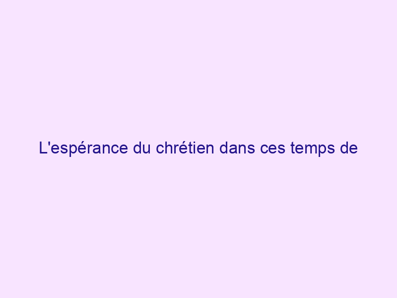 L'espérance du chrétien dans ces temps de la fin
